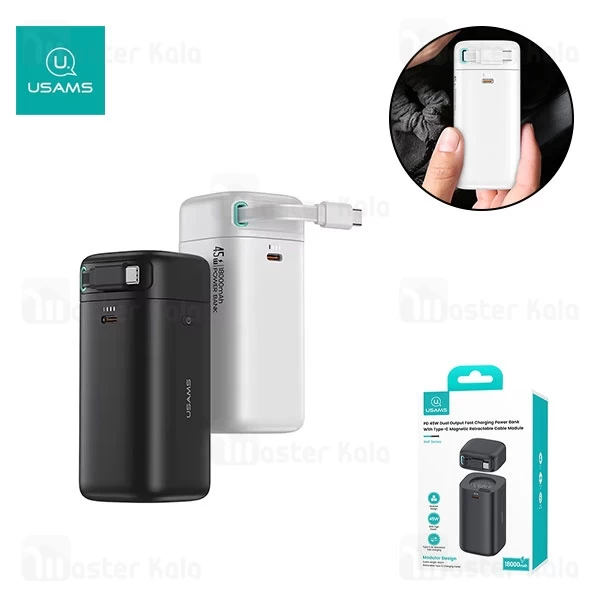 پاوربانک 18000 یوسمز USAMS CD216 توان 45 وات همراه با کابل متصل