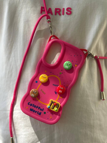 قاب آیفون خرسی پاپیون استریپ+بند ست کنفی ساده