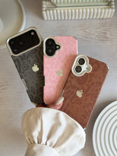 قاب آیفون گل فلاور کرم فندقی + بند چرمی ست
