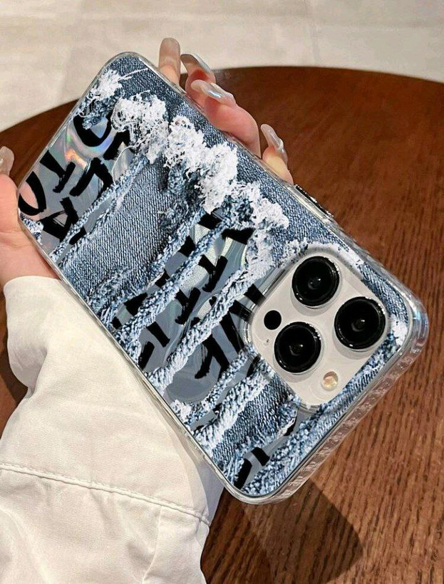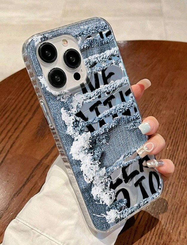1PC FYD Water Ripple Pattern Jeans Holes Design Phone Case Compatible With