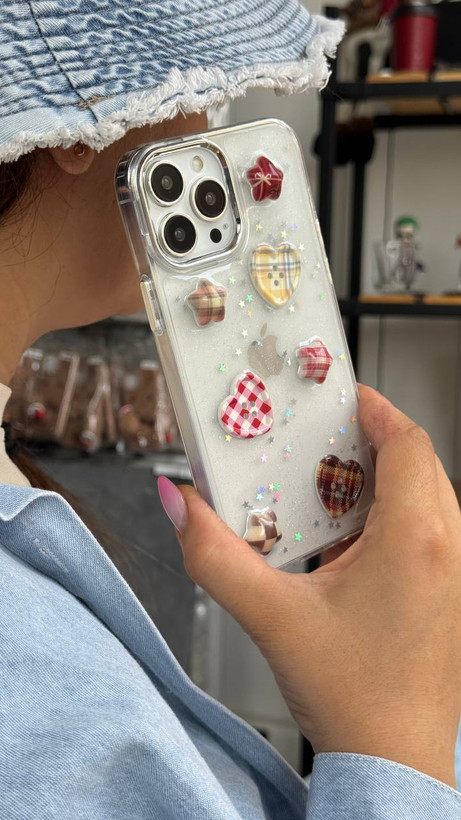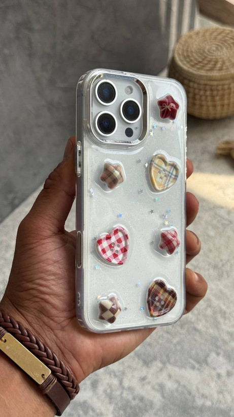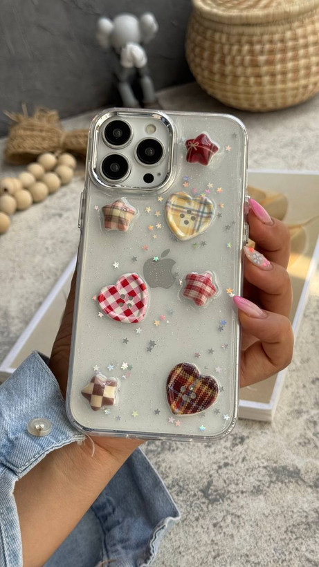 قاب آیفون طرح ستاره و دکمه قلبی شفاف، خاص،فانتزی