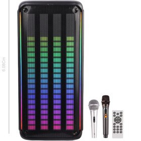 اقلام همراه بلندگو : دو عدد میکروفون ، ریموت کنترل ، کابل شارژ