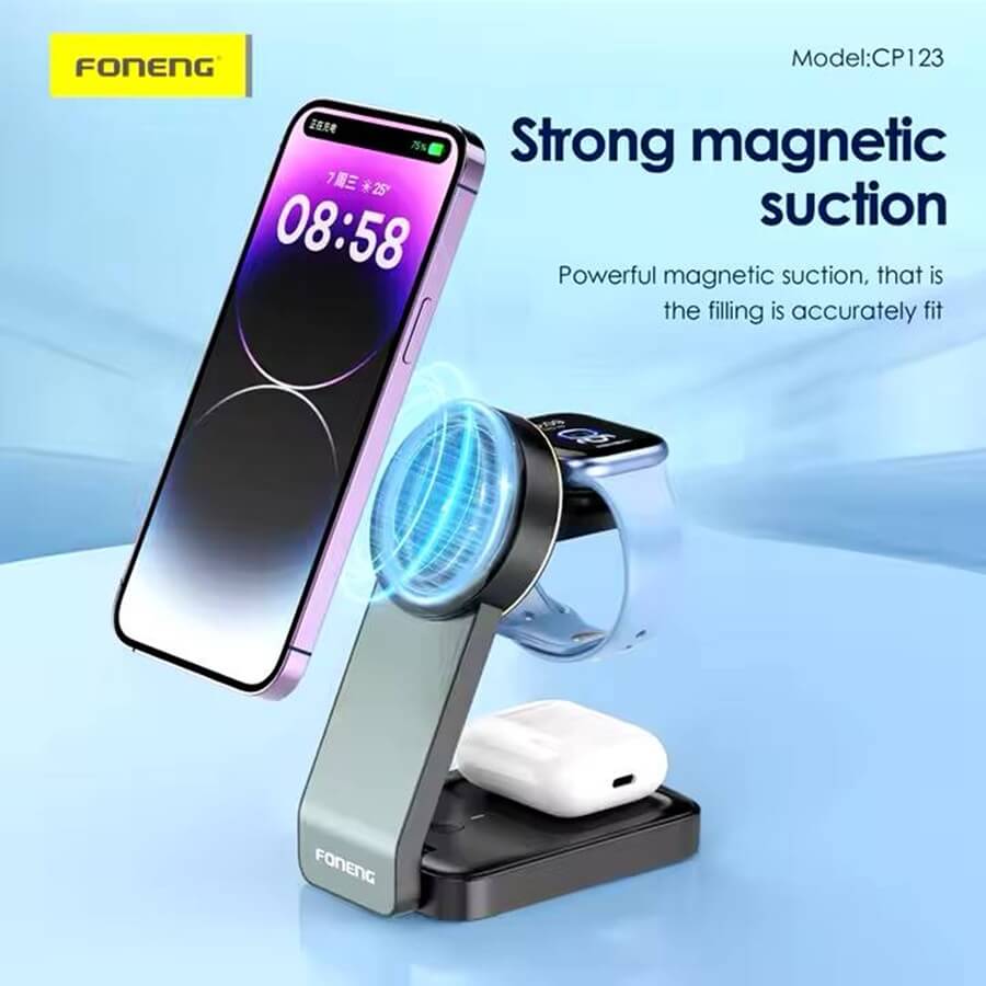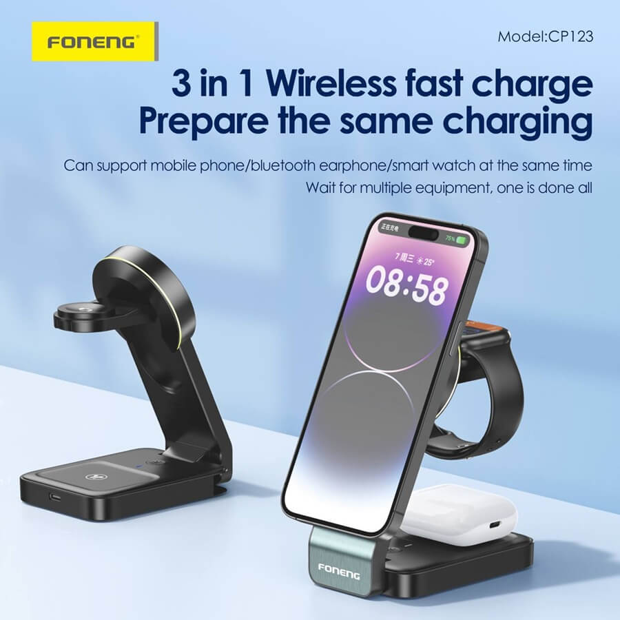 شارژر وایرلس سه کاره فاننگ مدل CP123