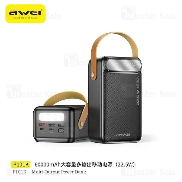 ظرفیت بالا (60000 میلیآمپر ساعت) توان شارژ با سیم 22.5 وات سه خروجی همزمان (USB و Type-C) نمایشگر LED هوشمند
