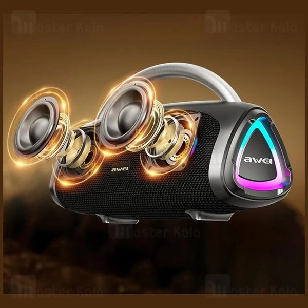 توان خروجی 100 وات باتری 8000 میلیآمپرساعتی بلوتوث 5.3 با اتصال پایدار و برد 10 متر پشتیبانی از رم، فلش، کابل AUX و USB استاندارد ضد آب IPX6، نور RGB و قابلیت TWS