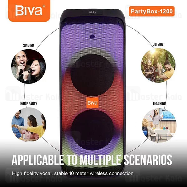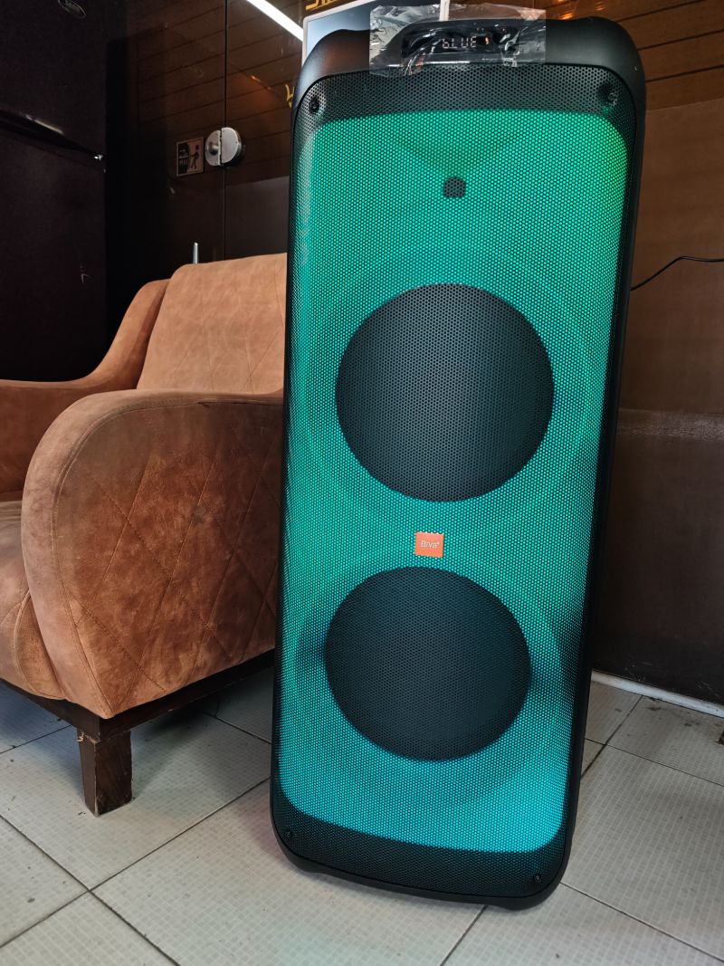 توان 1200 واتی قابلیت پخش از بلوتوث، کارت حافظه Micro SD، فلش مموری و کابل AUX نورپردازی LED با شش رنگ 2 بلندگو 12 اینچی گارانتی 6ماه شرکتی