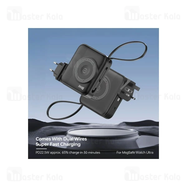 نشانگر دیجیتالی میزان باتری حداکثر توان خروجی 22.5 وات دارای 5 خروجی شامل درگاه Type C، کابل لایتنینگ، یک کابل متصل تایپ سی و شارژ وایرلس و خروجی USB مجهز به فست شارژ از نوع PD