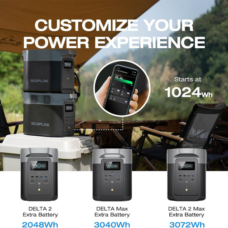 باتری قابل توسعه: با DELTA 2 Smart Extra Battery تا 2048 واتساعت و با DELTA Max Extra Battery تا 3072 واتساعت